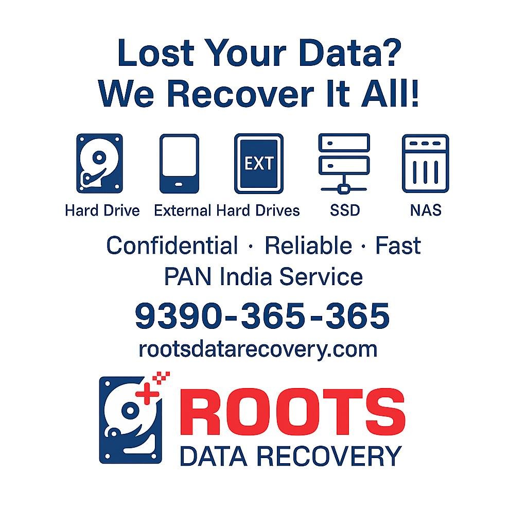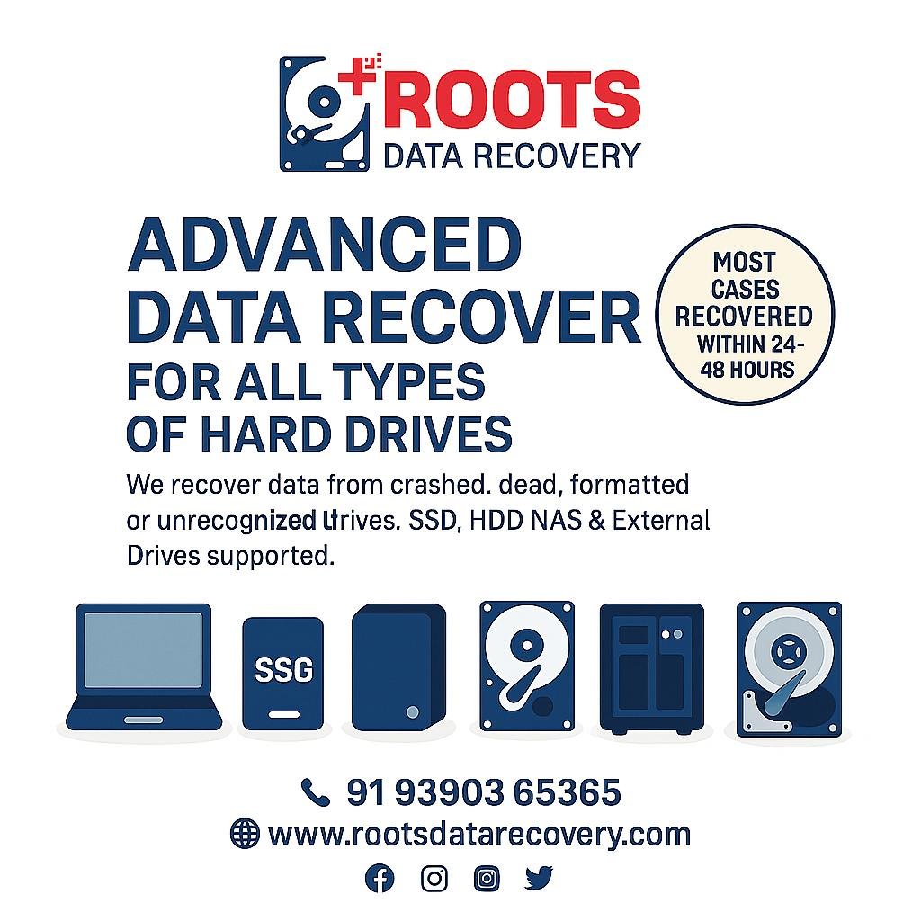 Roots Data Recovery brings over 22 years of experience and has served more than 11,000 happy customers across Secunderabad, Hyderabad, and nearby regions. We specialize in recovering data from laptops, desktops, HDDs, SSDs (including NVMe), NAS devices, RAID servers, and all types of external hard drives. We offer free analysis and follow a no recovery, no charge policy. Over 50% of cases receive recovered data within 24 hours. we also provide convenient courier pickup and delivery services for customers in other districts, Telangana, Andhra Pradesh, and neighboring states. Protecting your data is our top priority All process. Trust Roots Data Recovery for fast, reliable, and cost-effective data recovery services tailored to your needs.